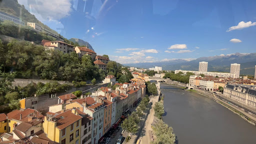 Cabinas redondas (burbujas) con paredes translúcidas que te transportan en cinco minutos hasta las fortificaciones de la Bastilla, a unos 500 metros de altitud. Escalón del macizo de la Chartreuse, la Bastilla es el punto de salida de rutas súper bonitas y de carreras alpestres, a pie o en bicicleta de montaña. En la cima esta la Terraza de los Geólogos que da a los contrafuertes de los Prealpes: Vercors y la Chartreuse. Desde el mirador Vauban hay una impresionante y preciosa vista del macizo de Belledonne y del Mont Blanc😍❤ En la Bastilla hay posibilidad de realizar numerosas actividades: vía ferrata, recorridos AcroBastille , el restaurante-terraza del teleférico , restaurante gastronómico Chez le Pèr’Gras (desde 1865) y el Musée des troupes de montagne. Decir que a la fortaleza de la Bastilla también se puede subir caminando a través del jardin de los delfines🐬.