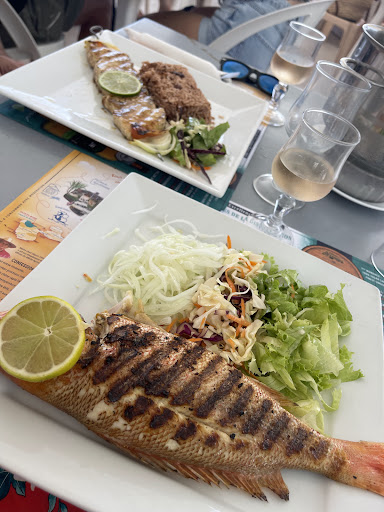 We visited this place three times and every time we were greeted warmly by the staff, the good vibes were followed by cold drinks and delicious food. Let’s start with best creole grilled fish we ever had, just the right spice and seasoning. We loved their cucumber salad, a unique treat for a beachside eatery. Their fish brochettes (skewers) and rice with beans were also incredible. We ordered rosé and it was perfect and affordable. Finally, they also serve...