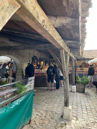 Sinon sur le marché en général, rien d'original , je dirai comme tout le monde, que le lieu est très beau (place médiévale), et les prix sont excessifs. Nous avons pris du poisson et des huîtres très frais et de bonne qualité mais très chers.