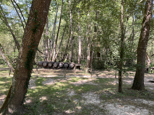 Read moreLe parc est dans un lieu paisible au bord du Ciron. Très bel endroit, avec possibilité de pique-niquer sur place. Il y a 5 parcours + 2 pour les petits. Nous avons passé un bon moment cependant j’ai trouvé que autant le prix des parcours pour petits étaient abordables autant j’ai trouvé excessif ceux pour les grands. Nous sommes dans l’obligation de payer selon la taille de notre enfant et pas selon sa capacité. Nous avons payé les 4 parcours pour ma nièce de 7 ans alors qu’elle a été physiquement capable de faire que les deux premiers pareil pour son frère qui a fait les 3 mais pas le quatrième. C était physiquement pas possible pour eux, ils n’avaient pas peur, (donc je parle meme pas du fait que c’était leur premier accrobranche et qu’ils auraient pu avoir peur de faire plus que le parcours 1). De plus, j’ai trouvé que le personnel n’était pas très présent sur le parc. Ils sont au P4 et au P5 mais avant il faut se débrouiller seul avec les explications du début. Heureusement que mon conjoint était là pour aider les enfants et les autres personnes présentes...