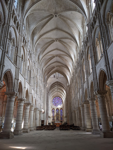 France is full of stunning gothic cathedrals and you're spoilt for choice. However, this one has an excellent location and is an unmissable feature of the location landscape being positioned on a hill top in a relatively flat area. The cathedral doesn't appear to receive many English speaking visitors as almost all signs were in French (and there were many). Sadly, the inside (whilst possessing the soaring architecture of the Gothic style) is quite bland compared to others. However, you can still discern some of the original colour wall painting on the entrance to some side chapels and the wall behind the high altar. There are also some obviously medieval figurines on the wall but these are broken. The reliquary is worth a visit, if not just to see the collection of various saints body parts encased in fine metals. It certainly provided an insert into the medieval mind and a contrast to our own mindset. There does appear to be a 'face of Christ' object that is venerated separately, although I couldn't discern the history as all the text was in French. Definitely worth a visit if you're...