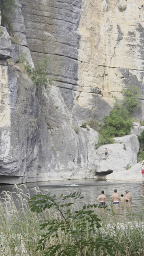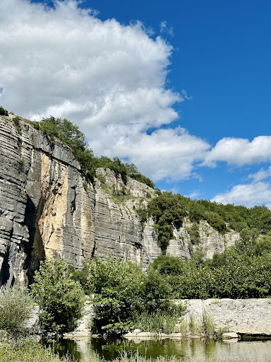 Read moreEin wunderschöner Platz zum Baden in der ardeche vor grandioser naturkulissse. Für kurzweilige Unterhaltung sorgt eine kleine Stromschnelle, die vielen kanufahrern ein unfreiwilliges bad im kühlen nass beschert. Es gibt feinen Sand, Kieselsteine und Felsplatten, sonnige und schattige Plätze. Der flache Einstieg ist auch für Kinder geeignet. Soweit die Vorteile. Leider ist die Zufahrt zum kleinen Parkplatz genauso wenig ausgeschildert wie der fussweg von dort zum Strand. Traurigerweise hatte die ardeche dieses Jahr im Juni viel weniger Wasser als letztes Jahr...
