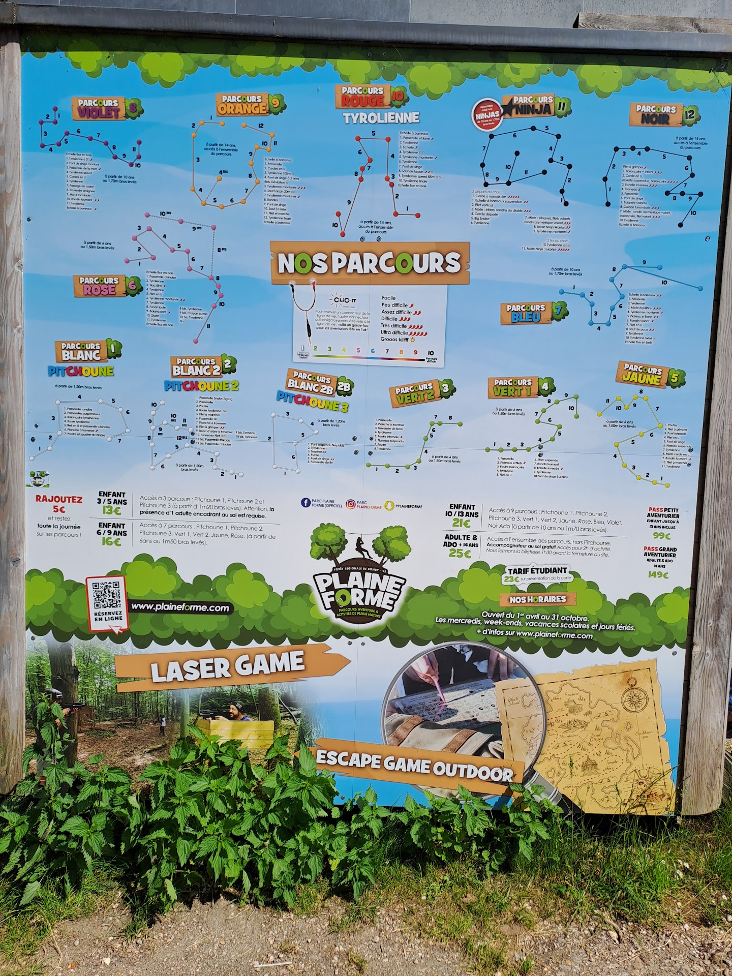 Read moreSuper cadre! Les enfants (9 et 12 ans) ont adoré l'accrobranche, d'autant plus qu'il y a plusieurs parcours en fonction de l'âge et du niveau de difficulté. On pensait que 2h étaient trop mais ça leur a permis de faire 2 parcours complets (vert et rose). De plus, l'équipe est bienveillante et agréable et les explications sont claires. Nous avions aussi réservé 2x15 minutes de laser game en forêt, avant cela, nous ne connaissions ce jeu qu'en intérieur. Ils se sont amusés en extérieur, le temps était très agréable, ils se sont dépensés et l'après-midi est passée en un clin d'œil. Pour ma part qui ai un peu de mal avec la nature (à cause des allergies), je les ai suivis durant leurs parcours d'accrobranche et j'ai été agréablement surprise de les voir se balader dans les airs avec assurance, agilité et surpasser certaines appréhensions. Puis je me suis posée à la buvette pendant qu'ils jouaient au laser game. Je recommande vivement le parc plaine forme car nos enfants ont besoin de nature et d'aventure (surtout lorsque l'on vit en appartement), le tout dans 1...
