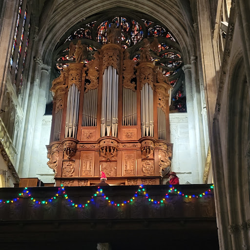 We took a river cruise and stopped in Vernon along the Seine. It is an adorable and walkable city with bakeries, meat markets, cheese sellers, cafes and gift shops. I even got to practice my French when some of my cruise mates came into a chocolate shop and asked me to help them order!! How fun. The city has a rich history, and it is told silently by the buildings that are a mixture of old and new. The highlight of our trip was a visit to Our Lady in Vernon, called Collégiale Notre Dame in French. The church had an impressive holiday recital for us. A 45 minute recital was given on their impressive antique organ....
