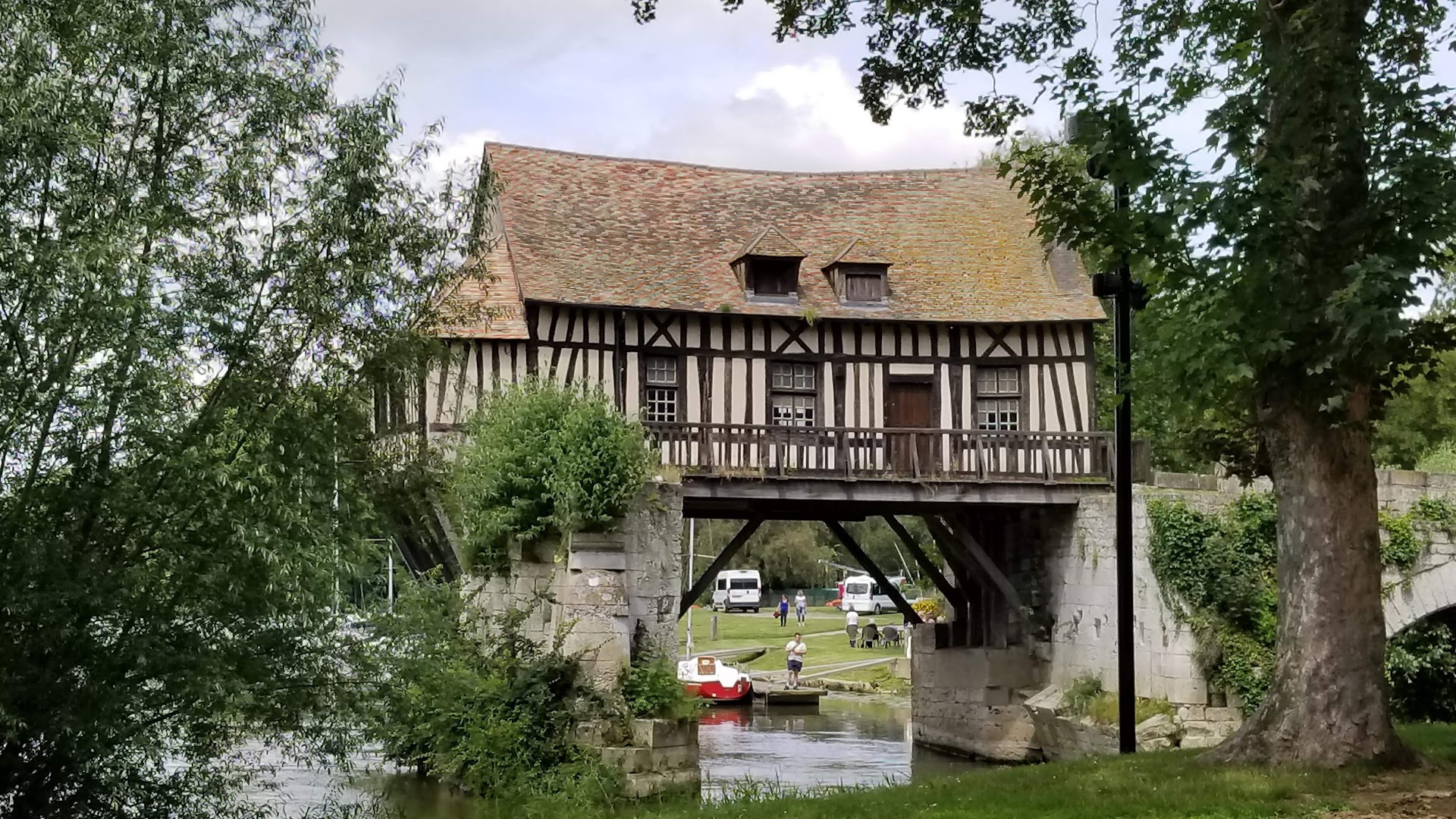 Visited Vernon town including the Old Mill which is very pretty. Viscount of Vernon authorised wheat windmills to be built upon 4 pillars of the bridge, above river on 5th August 1654, with à hanging stone/ wheel, using flow of river to run them. In 18th century, 6 wheat windmills were in use until October 1849, when a downstream dam built in Notre Dame de l'Isle, prevented mills to continue running, also causing unemployment. The half timbered building dating to 17th century, was regularly rebuilt due to flooding. The last remaining mill, initially brought by an American & abandoned by 1930, left to literally fall apart was thankfully restored & reclaimed in 1980 by Vernon town. Pillars supporting old bridge still remain & restored mill is well worth a visit. With so much more to see including nearby wildlife, castle & beautiful walks, highly recommend, very picturesque. (We were fortunate to see a duck raise its head out of river with an eel wrapped around it's neck, thankfully both managed to separate from...