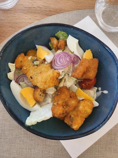 Nous sommes venus dĂźner avec mon compagnon. Belle dĂ©couverte avec un menu a 35€ avec entrĂ©e plat et dessert. La salade cĂ©sar Ă©tait tres bonne, l'onglet de bƓuf ainsi que l'entrecĂŽte Ă©tait tres tendre et bien cuit. La sauce au bleu d'Auvergne Ă©tait dĂ©licieuse. Dommage qu'il n'y avait pas de salade pour accompagnĂ© l'onglet. Pour le dessert il propose une planche de 5 desserts du moment sans cafĂ© ce qui est parfait quand on ne boit pas de cafĂ©. La mousse au chocolat blanc Ă©tait en revanche trop sucrĂ© cest dommage, la pana cotta a la pistache Ă©tait super bonne, la crĂšme brĂ»lĂ©e Ă©tait bonne Ă©galement. J'aurais bien aimer avoir un peu de caramel dans le fromage frais qui Ă©tait un peu fade sans rien. TrĂšs bon accueil du personnel, trĂšs bon cadre Ă©galement.