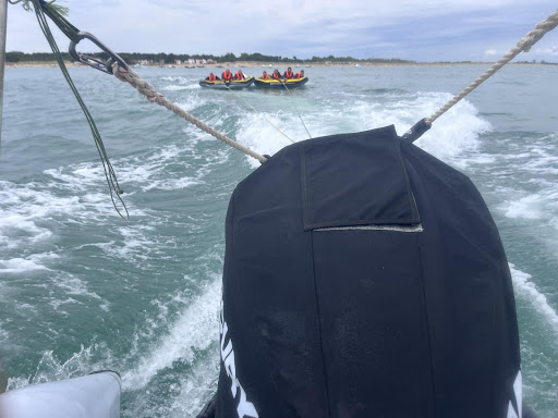 Read moreNous sommes montés dans le bateau pendant qu'un autre groupe faisait la bouée. Malheureusement le bateau est tombé en panne et nous avons dû retourner sur la plage. Ça ne se prévoit pas et nous n'en voulons a personne pour ça. Mais ce que nous n'avons pas apprécié c'est le manque de sens commercial du gérant qui a préféré annulé notre tour pour laisser passer les gens d'après une fois la réparation faite plutôt que de décaler tout le monde alors que le conducteur du bateau nous avez dit d'attendre qu'il nous reprendrait dès que possible Même pas un geste commercial avec un verre ou une glace à offrir aux enfants auxquels nous faisions une surprise et qui étaient vraiment...