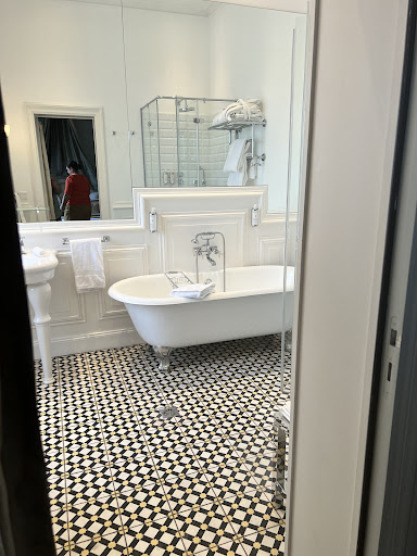 Read moreModernised and refurbished chateau located adjacent to a vineyard and which certainly looks the part. The original building has been very impressively updated whilst maintaining the key original features. I suspect the majority of the accommodation is within two rather obvious new blocks to the front and the side of the main building.||So we were probably quite lucky to find ourselves in a pleasant upper junior suite at the side of the chateau itself. This is an interesting double-level room with a vineyard-facing terrace located down a flight of external stairs. Plenty of room there although the lounge deck chairs were not the most ergonomic, and sun loungers as per the website would have been preferable. Not overly private either as the side view was basically an entire block of accommodation.||Inside, and below the exposed rafters, the decor was peaceful and the large bed was very comfortable. Sleep was no problem; for a hotel with plenty of guests we were completely undisturbed. No shortage of storage space here, and ample minibar and hot beverage facilities. The L-shaped floor plan was rather unusual and the small lounge nook was quite cosy with a good vineyard view. The air-conditioning worked well and the automatic window blinds were effective. An interesting smattering of rococo fixtures, fittings and furniture added interest. Down some stairs for a separate w.c. which was across from a higher-level bathroom with separate shower, the latter of which was notable, again, for the splendid view across the vineyard. The hairdryer was rather a monster, and the badly stained floor tiles in both areas really did need replacing urgently. Looks like the whole suite had seen plenty of action as there were plenty of chips and scuffs all over. Slight irritation in that the front screen TV welcomed a Mr Rodrigo (very much not me) for our entire stay. In saying all that, we actually liked the room a lot. It had character, space and comfort. ||Breakfast is located in the dullest of a pair dining rooms and was not very inspiring; all the usual basics and not a lot of variety. Egg dishes can be requested, which appears to be a big secret. ||There is no manned bar on site so it's a question of finding a member of staff (not usually a problem) who will then deal with it remotely before returning. I must admit that I found it very odd not to have a physical bar in such a large hotel. However, the restaurant, which is situated in the best room in the building, is undeniably excellent and well worth a good blow out. Note that it frequently seems to be used for corporate functions so punters are relocated to the dull breakfast room in such instances.||We liked the ornate grounds and terraces which enhance the whole feel of the place, and there is plenty of car parking adjacently. St Emilion is about 5 minutes drive away; a pig for daytime parking but all free after 19.00 and plenty of room. There is a hotel shuttle bus but the timings and frequency really do need to be reviewed.||Finally, I have to commend the staff here. All very friendly, keen and eager to please. Mostly very young but clearly highly motivated. ||It's a nice place, it ticks all the chateau boxes and it's convenient. It's also not remotely posh or elevated so would represent a good option for most potential visitors. And it does look...