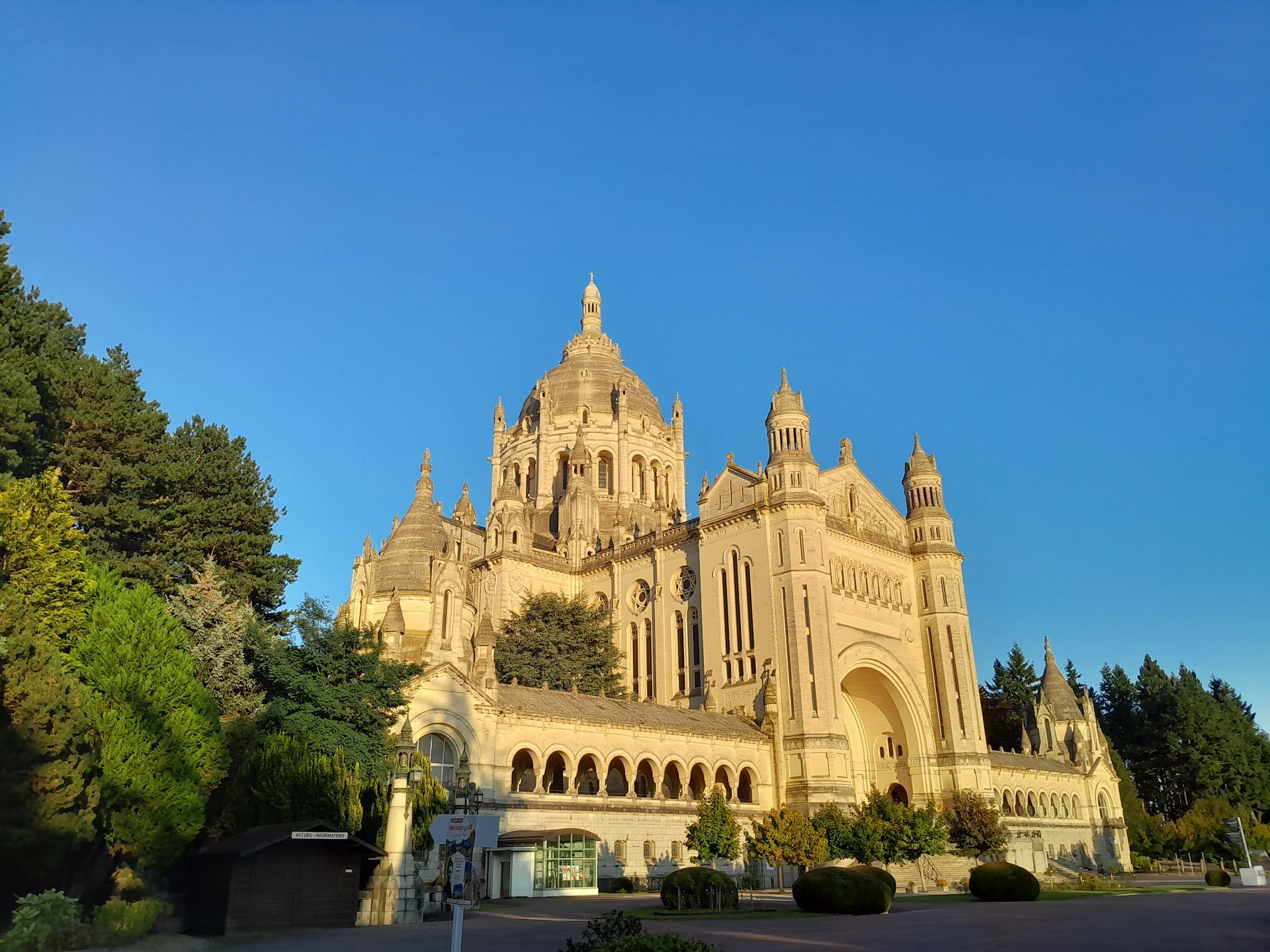 Read moreAls ich die Basilique Sainte-Thérèse in Lisieux zum ersten Mal erblicke, bin ich überwältigt von ihrer schieren massiven Größe. Die Basilika thront majestätisch auf einem Hügel und scheint den kleinen Ort Lisieux zu überblicken wie ein wachender Engel. Die Fassade ist eine Mischung aus Neoromanik und byzantinischen Elementen, helles, strahlendes Gestein, das im Sonnenlicht fast leuchtet. Die Kuppel erhebt sich hoch in den Himmel, gekrönt von einem schlichten Kreuz, das über der Normandie wacht.