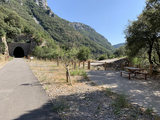 Parte de un tramo de vía verde que une Le Vigan con Nimes, lástima que sólo esté acondicionado este tramo. Para hacer la vía verde entera solo es practicable en Btt y con varias cámaras de recambio y luces ya que los túneles no están iluminados. Yo solo hice el tramo de Le Vigan a Quissac de donde corresponden las fotos. El paisaje es espectacular!
