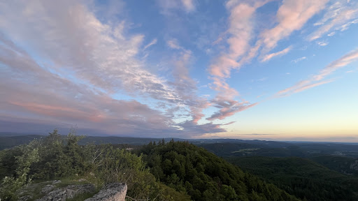 Read moreTrès beau point de vue sur le haut Jura, endroit calme dans les bois, seul petit bémol, l'accès par la petite route est relativement long au bord des falaises ( sensations au rdv mais il ne faut mieux pas avoir peur du vide) et c'est à sens unique sans vraiment la possibilité de faire demi-tour sur ce chemin non goudronné ... L'avantage on est encore plus content d'arriver en haut, ça vaut...