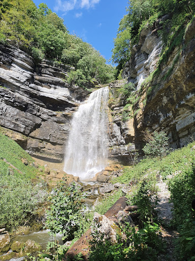 Read moreLa Cascade de l'Éventail est l'une des cascades les plus emblématiques et impressionnantes du Jura qui se trouve à Menétrux-en-Joux. Elle fait partie du jolie circuit des Cascades du Hérisson qui compte plusieurs chutes d'eau spectaculaires le long de la rivière du Hérisson. La Cascade de l'Éventail est la plus grande et la plus célèbre du parcours avec une chute d'environ 65 mètres en plusieurs paliers ressemblant à un éventail ouvert d'où son nom. Cette cascade se distingue par sa largeur et son débit particulièrement puissant après de fortes pluies ou au printemps ce qui accentue la splendeur du site. Le cadre naturel est sauvage et verdoyant entouré de falaises et de forêts créant une ambiance apaisante et majestueuse. L'accès à la Cascade de l'Éventail est facile par un sentier de randonnée qui parcourt toute la vallée du Hérisson. C’est l’un des points de départ ou d’arrivée du sentier des Cascades du Hérisson. En bas de la cascade, une plateforme permet aux visiteurs d'admirer la chute dans toute sa splendeur et son accès est également sécurisé pour...