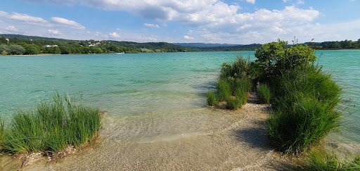 Un lac magnifique, le soleil lui donne toute sa splendeur au cours de la journée, la baignade est trÚs agréable, si les chiens ne sont pas acceptés ce que je comprends...merci de faire en sorte que vos enfants respectent les canards...sinon vous serez coupable de la suite...Attention environnement blindé de tiques pour nos loulous, prévoyez bien le traitement, la brosse , bain aux agrumes pour les faire tomber et 2 vétos sur le village au cas...