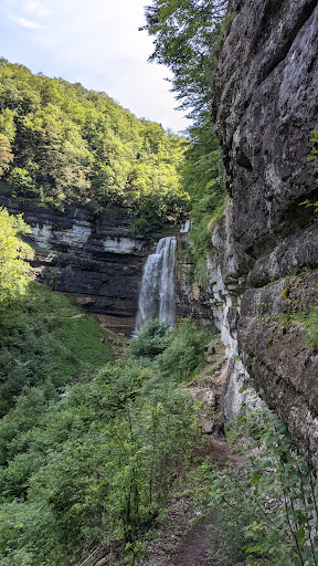 Le Grand Saut est l'une des cascades les plus impressionnantes du célèbre ensemble des Cascades du Hérisson qui est situé près de Menétrux-en-Joux. Avec une chute d'eau d'environ 60 m c'est l'une des plus hautes cascades du Jura offrant un spectacle naturel saisissant. Le Grand Saut est souvent considéré comme l'un des points forts du parcours de randonnée des cascades du Hérisson qui est réputé pour ses panoramas exceptionnels. L'eau se déverse avec force sur des parois rocheuses abruptes créant un paysage spectaculaire surtout après les pluies ou au printemps lorsque le débit de la rivière est à son maximum. La cascade est entourée de végétation dense typique des forêts jurassiennes qui accentue son caractère sauvage et préservé. Le sentier qui mène au Grand Saut fait partie d'un itinéraire bien balisé qui permet aux visiteurs de découvrir plusieurs autres cascades le long...