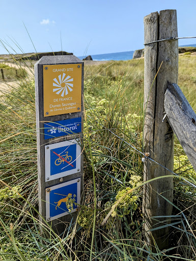 Read moreLa Côte Sauvage de Quiberon est un site naturel remarquable en Bretagne. Cette portion de littoral escarpé s'étend sur environ 8 kilomètres le long de la façade ouest de la presqu'île de Quiberon. Le nord de la Côte Sauvage montre les falaises les plus hautes et abruptes, notamment l'Arche de Port Blanc. En descendant vers le sud, la côte reste découpée mais perd un peu de hauteur. Les vagues viennent se briser contre les rochers, créant des gerbes d'écume blanche et offrant des paysages aux couleurs magnifiques. Le meilleur moyen de découvrir la Côte Sauvage reste le sentier côtier GR34, qui permet d'admirer les paysages depuis de nombreux points de vue. La Côte Sauvage est un espace naturel protégé, ce qui garantit la préservation de sa flore et de sa faune : ajoncs, bruyères et oiseaux marins nichant dans les falaises. Des panneaux du Conservatoire du Littoral invitent les marcheurs à respecter l'environnement et à rester sur les sentiers balisés, pour leur sécurité également. La presqu'île propose plusieurs circuits de randonnée en boucle qui permettent de longer partiellement la...
