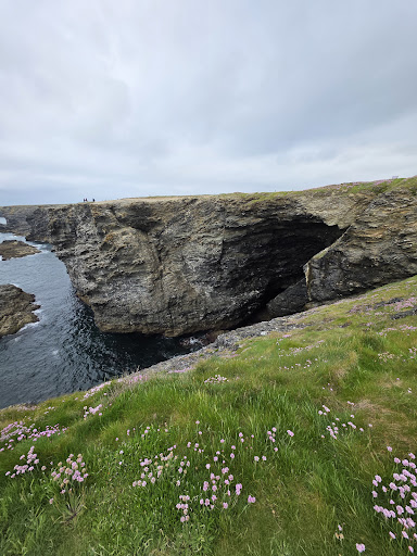 Read moreLa grotte de l'Apothicairerie est située sur la côte sauvage. Il s'agit en réalité de deux cavernes communicantes traversant une pointe rocheuse. Pour l’anecdote, la grotte doit son nom aux nombreux nids d’oiseaux autrefois alignés le long de ses parois, évoquant les échoppes des apothicaires. À proximité se trouvait autrefois la « Roche Percée », une arche naturelle qui s’est effondrée en 1975. Jusqu’aux années 1980, il était possible de descendre dans la grotte par un escalier taillé dans la roche, mais celui-ci a été fermé depuis, jugé trop dangereux. Aujourd’hui, il ne reste qu’un point de vue sur cette grotte désormais...