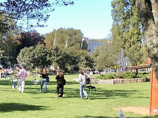 The play area stands out by far and there's always company during school vacations. There's a small carousel attached to it. Lots of sunbathing beds and other benches. You're also allowed to sit on the grass. The surroundings in general seemed pretty safe as it's right next to the hôtel de ville. We could also hear live music while lying down...