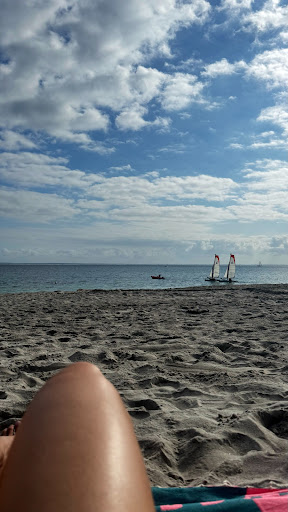 Une plage magnifique de sable fin, sans rochers pour se baigner. JâenlĂšve une Ă©toile dĂ» aux sauveteurs en mer : la premiĂšre chose que lâon remarque en arrivant sur cette plage est la densitĂ© des baigneurs en DEHORS de la zone de baignade surveillĂ©e... Pourquoi ? Et bien, ayant frĂ©quentĂ© de nombreuses plages en France, jâai remarquĂ© que les sauveteurs, ici, font beaucoup trop dâexcĂšs de zĂšle : vous pouvez ĂȘtre le seul baigneur dans la zone, Ă 2m de la cĂŽte, vous vous retrouverez avec 3 sauveteurs les yeux rivĂ©s sur vous sans aucune discrĂ©tion... De plus, ces jeunes sauveteurs courageux se voient pousser des ailes au point de se prendre pour de vĂ©ritable policiers des mers. Fini la prĂ©vention, oubliez la vision du sauveteur sympa qui est la pour vous aider et vous rappelez gentillement certaines rĂšgles : NON, aujourdâhui vous pourrez voir des planchistes dĂ©butants Ă©puisĂ©s, en difficultĂ©s, emportĂ©s par le vent et le courant, pĂ©nĂ©trer la zone, Ă 30m du bord, et se faire incendier par ces hĂ©ros. Vous pourrez voir une petite annexe avec des enfants et une pauvre maman essayant de rejoindre le chenal (face au vent) se faire siffler par ces « sauveteurs » qui restent les pieds dans le sable Ă regarder une embarcation au bord du renversement. Vous pourrez voir un homme, dâun certain Ăąge, ĂȘtre dĂ©portĂ© en paddle en dehors du chenal et pĂ©nĂ©trer (1m) la zone SANS BAIGNEURS se faire copieusement insultĂ© par un jeune sauveteur fraĂźchement diplĂŽmĂ© du bac... Bref jâinvite ces sauveteurs Ă aller visiter le musĂ©e de Port Louis et voir ce quâest un vrai sauveteur en mer.