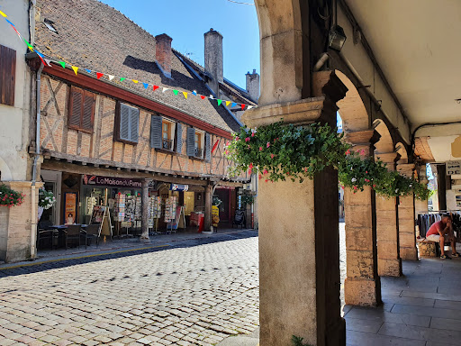 Partis d'Alsace pour un Week-end près de Lyon, comme toujours, je fais une halte à l'intérieur des terres et 2 panneaux de curiosités m'invitent à venir vous voir. Vous avez éveiller ma curiosité, la rue des Arcades est juste magnifique avec ces invitations à s'installer, ses belles boutiques ou j'ai fais quelques achats et un passage chez le coiffeur. Je comptais marcher 45 mn mais je suis rester 3h, j'avais plus envie de repartir ... J'ai marché jusqu'au pont de l'Oseille pour admirer la rivière, puis je fus attiré par des klaxons les fonds trucks et les chauffeurs poids lourds en faveur d'octobre Rose. J'aurai aimé marché le lendemain les 10 km.