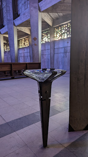 Read moreEcht de tofste, stoerste, meest indrukwekkende kerkgebouw dat ik ooit gezien heb. Als een betonnen bunker aan de buitenkant, en een jaren 70 disco show aan de binnenkant, maar dan met stijl, smaak en futurisme als kenmerk. Echt bijzonder. Architectuur zoals het hoort te zijn, achter alles zit een gedachte, maar volledig zonder opsmuk. Treed binnen en vergeet niet je mond weer dicht te doen, want hij blijft openvallen van verbazing en het indrukwekkende schouwspel van kleur, structuur,...