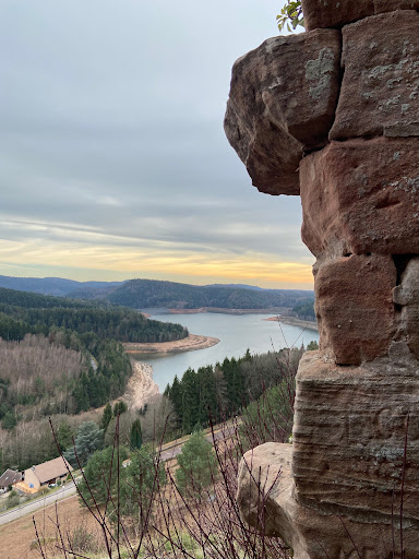 Read moreNous nous sommes garés sur le parking qui mène à la ruine du château de la Pierre Percée (en cours de restauration, visite impossible. Nous avons trouvé un "chemin de traverse" ➕ c'était vraiment une "piste noire" + de 45°de dénivelé, durée de descente 6 min, petit sentier tortueux et chemin de bucheronnage. On est arrivés en bas, pas d'endroit pour se poser, le parcours du tour du lac durait encore 6 heures, nous avons préféré remonter : c'était un enfer. Je recommande ce parcours : cependant, pas de vélos, pas de gros chargement, pas d'enfants, prévoyez de prendre à boire. Je recommande ce lieu...