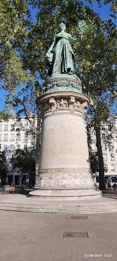 Originally, the statue was accompanied by four stone groups representing Liberty, Equality, Fraternity, and the City of Lyon, reinforcing the core values of the Republic. However, during the construction of Lyon’s metro in 1975, these groups were relocated: Liberty, Equality, and Fraternity now reside in Parc Bazin, while the City of Lyon group was moved to Square...