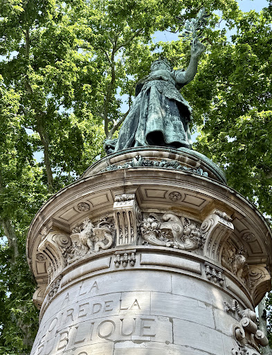 Commissioned in 1880 to commemorate the centenary of the French Revolution, the statue was crafted by sculptor Émile Peynot and architect Victor-Auguste Blavette. Inaugurated in 1889, the monument features a bronze figure of Marianne—the personification of the French Republic—standing atop a 15-meter-high pedestal. Marianne is depicted caressing a lion with her right hand, symbolizing strength, while holding an olive branch in her left, representing peace.