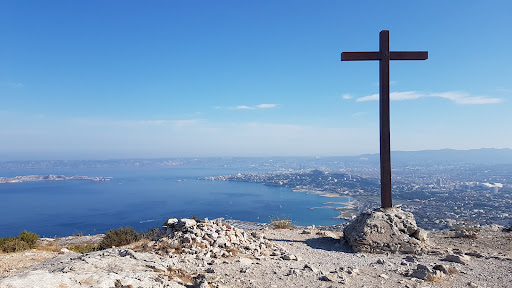 Great 360° view. I started the hike from the coast at Grotte Rolland from the 19 bus stop and walked inland from the nearest traffic lights and followed the yellow route to the top. There are a couple of near vertical sections higher up requiring good grip on your shoes and using handholds. It was hot and sweaty work but the view at the top was worth it. The higher you get the more the wind blows which frankly was a relief. I contemplated dropping down the other side into the Marseilleveyre / Callelongue calanques but was short on time or a known route. I would not recommend the climb for young children. Couple of times on the descent I lost my footing so take care. From the bottom of the hill ... where there is a helpful poissonierie that does nice oysters...you can just make out the cross which puts your efforts into perspective. The descent took about 45 mins ... I forgot to...