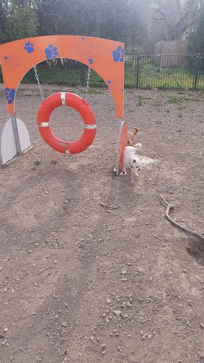 Un desert aride parsemé de machines de sport à l'allure de "pour les pauvres" avec des formes et des couleurs d'un autre temps.. Le parc a chien est à l'abandon, il est supposé y avoir des parcours canins, il reste un tube tunel. Les sacs a déjections sont un souvenir, il n'y en a plus mais il reste leur présentoir. Il y a une fontaine...c'est bien 👏.
