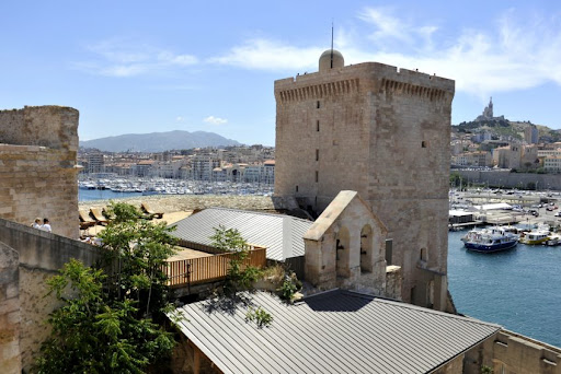 Du haut de la tour du Roi René accessible depuis le fort Saint Jean si joliment remis en valeur dans la continuité du Mucem, vous pourrez admirer une vue magnifique sur le Vieux Port, un point de vue exceptionnel sur le Palais du Pharo, vestige des ambitions de Napoléon III de faire de Marseille le pendant méditerranéen de la villa Eugénie à Biarritz, mais aussi sur l’horizon qui se dessine au large de la rade de Marseille.