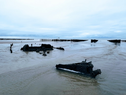Cette épave qui semble être celle d'un ancien chalutier utilisé pendant la première guerre mondiale par l'armée britannique comme démineur a peu résisté au temps et à la mer. Les enfants et les plus grands se raviront de découvrir cette épave le temps d'une petite promenade ou d'une pêche aux crevettes. Bien que ce bateau soit très abîmé, on voit toujours la coque ce qui permet à chacun de se prendre pour le capitaine du bateau. Le danger semble modéré, je n'ai pas repéré de partie en métal pointue ou tranchante,...