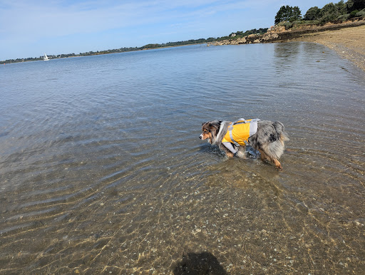 Petite plage iledaraise fort sympathique... la marée ne descend pas trop loin et ne monte pas trop haut donc le top pour la baignade et la bronzette. Plage très touristique en somme. Petite réticence au niveau des nombreux cailloux que l'on trouve sur la plage, bien que cela soit très minime. Un coin ombragé sous les arbres derrière la plage permet de pique-niquer, et la pointe abrite une statue de la vierge Marie assez pittoresque... à visiter pour tout amateur du Golfe...