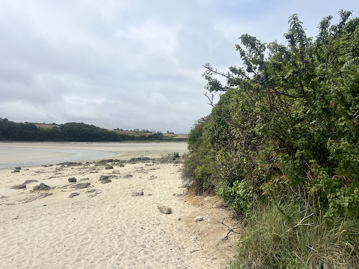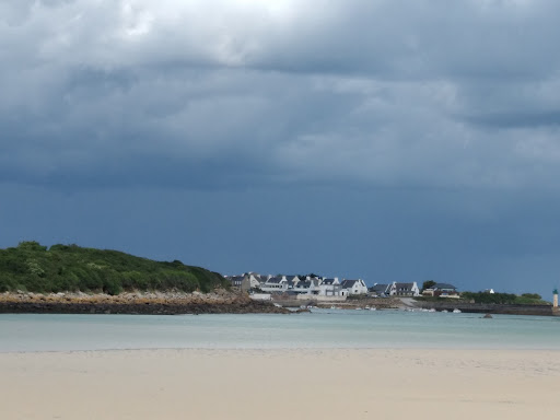 Je vais manquer d'objectivité, je suis Plougoulmois... Se situe sur une petite langue de dune (Pen an Dour), sur la commune de Plougoulm qui se situe entre Santec et Sibirile. Bordée de 2 bras de mers dans lesquels se jettent le Guillec d'un côté et l'horn de l'autre côté, est à voir absolument à marée haute... C'est magnifique. 😍 La plage n'a rien d'extraordinaires mais comporte quelques avantages. Il y a toujours de l'eau à basse mer dans le bras rivière, pour les enfants c'est top (pour les toutous aussi...) , très peu fréquentée et abritée des vents. Attention avec les jeunes enfants, à marée montante le courant est fort pendant 1h00. Petit bémol, après plusieurs jours de beau temps les algues vertes font...
