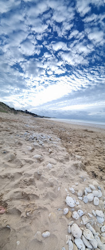 Read moreBelle plage de sable (même à marée basse), avec poste de surveillance (sur une petite portion uniquement) et vendeurs ambulants, de beignets, boissons et friandises. Au loin, on aperçoit le phare des baleines. Quelques blockhaus chavirant dans la dune, viennent malheureusement gâcher le paysage. Leurs graffitis de couleurs vives ne font que rappeler leur laideur initial. L'eau est relativement chaude fin août (2016), puisqu'elle est à 22°C. À marée basse, l'eau se trouble (le sable), rendant l'utilisation de masques ou lunettes de plongée inutile. Pour garer les voitures ça peut devenir compliqué les jours de fortes affluence. Le parking n'est...