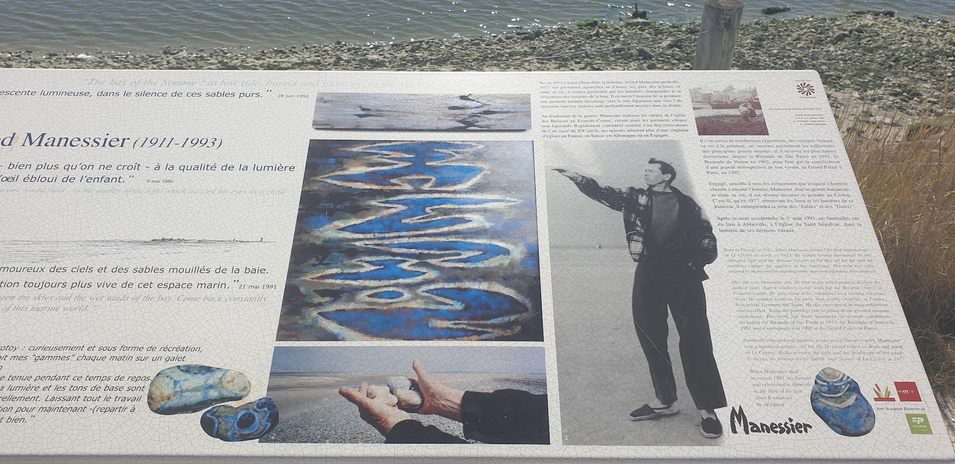 Dieses in der Ursprünglichen Form errichtete Damm-Bauwerk mit 2 Schleusen von 1865 soll die Verlandung des Hafens von Le Crotoy verhindern. Bei Flut sind die Schleusentore geöffnet und das Meerwasser füllt das hinter dem Damm liegende Wasserbecken. Bei Höchststand der Flut werden die Tore geschlossen und erst 5 Stunden danach wieder geöffnet um mit der starken Strömung den Sand Richtung offenes Meer zu spülen. ( Bei Ebbe zieht sich das Meer bis zu 14 km von Le Crotoy zurück ) Für mich war es interessant zu beobachten, mit welcher Macht die gewaltigen Wassermassen dann den Hafen und die Bucht durchfließen. Aus diesem Grund ist es für Besucher hier auch wichtig die Sicherheitsanweisungen bezüglich Wanderungen bei Ebbe...