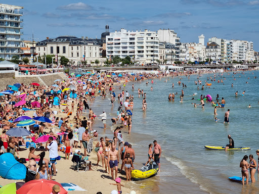 Read moreIl y a tellement peu de plages aussi surprenantes... nous sommes en pleine ville, les boutiques sont juste au-dessus, les restaurants nous accueillent sur le remblai ou bien sur la plage, le port n'est pas loin, on peut apercevoir les bateaux qui s'y rendent. La plage est immense, magnifique, le sable est doux, la mer est calme le plus souvent et, compte tenu de l'affluence, le spectacle y est permanent, tant sur la plage qu'au dessus. Souvent le matin à la marée basse, on y vient pour la pêche, la promenade ou bien encore pour y trouver le calme. L'après-midi, la plage se remplit, on croit avoir de la place mais la marée monte si haut qu'on est obligé de se réfugier sur les rebords en béton. On se regarde, se jauge, debout, bravant les éléments. Le plus courageux sera le dernier à quitter la plage... pour y revenir très vite diner au calme, la marée se retirant. Le Covid est passé par là, les coefficients sont élevés et la plage se vide sitôt que la corne de brume se fait entendre. La foule quitte l'eau, de mauvaise grâce et la foule grossit absurdement pour monter sur le remblai et se mélanger masquée dans les magasins et les restaurants. La braderie a été autorisée en ces derniers jours de juillet, allez...
