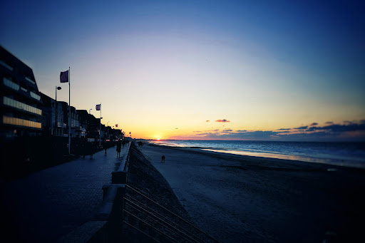 We visited Cabourg in early March. We arrived at the beach just as the sun was setting. It was a breathtaking sight. The sky and the sea were painted with different shades of pink, orange and purple. The sun slowly disappeared behind the horizon, leaving a trail of light on the water. The beach was quiet and peaceful, as if time had stopped.