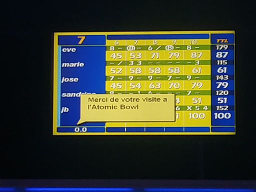 Read moreNous sommes venues faire une partie de Quille ce samedi soir avec mes amis, le temps d'attente était extrêmement long et les hôtesses de caisse pas très agréable, on se demande même si elles veulent vendre leurs produits ... passons ... nous avons voulu boire un verre à l'étage ... malheureusement plusieurs serveurs sont passées à coté de nous sans prendre notre commande et après 15 minutes nous avons du allez commander au bar qui nous à répondu qu'un serveur allez venir prendre notre commande avec arrogance ... incroyable ! Toujours pas de jeu et toujours pas de boissons ... nous avons décidé d'allez en bas pour finir de patienter près de notre piste vu l'attente sans retour de l'étage, une fois installé une serveuse est venu prendre notre commande quelque minutes après ... Merci ! Après ce jeu de quilles nous sommes allez finir la soirée au bar ou cette fois ci nous avons pu passée une commande et être également servis ... bravo également au barman pour son sang-froid avec certain type de client de l'établissement.