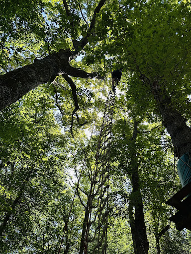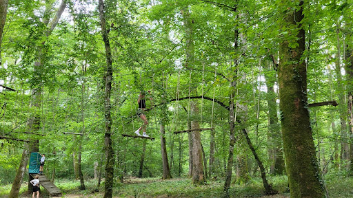 Great place, a short drive from the village of Aignan but right next to a lovely swimming lake. We are 2 families aged 57 to 11 years and do accrobranche every holiday. I would say this is a very good site, probably on the more challenging side. The most difficult course was only attempted by our experienced climber and he was exhausted after! One course is only ziplines, if you prefer that and there are 2 very long, very fun ziplines across the lake and back (minimum weight 40 kilos or you get stuck half way). Friendly and helpful staff, highly recommended. Their card machine didn't work for us so had...