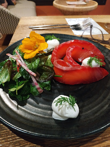 Service impeccable mis à part le pain qui a fait un peu défaut car non approvisionné si l'on en fait pas le demande. Personnel très accueillant et serviable.plats bien présentés style bistrot gastro, goûteux, cuissons respectées, frites un peu sèches. Seul défaut les desserts qui ne sont pas à la hauteur du reste, trop de glace et de chocolat dans le choix de dessert, la tarte agrumes un peu trop sucrée et le duo exotique sans saveur avec un biscuit simple. Dommage pour la note sucrée finale qui reste souvent plus présente en mémoire que les plat et qui finit normalement un repas sans fausse note. Des fois certains desserts simples et bien maîtrisés valent mieux qu'un dessert plus sophistiqué mais non abouti. Cela reste une belle expérience