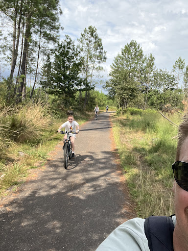 J’ai loué des vélos au bord du lac. Nous avons fait la piste qui longe le lac, celle qui mène à Biscarrosse bourg. Pistes très agréables, bien sur avec beaucoup de monde et parfois certains qui roulent très vite mais ça se passe assez bien. Les pistes sont relativement plates et donc ça se fait très bien avec des enfants. Toujours un peu compliqué quand on croise les quelques grandes routes car beaucoup trop de gens ne s’arrêtent pas, donc rester vigilant. Après nous avons commencé la piste qui mène à Biscarrosse plage et nous avons moins apprécié car beaucoup de monde et des montées/descentes pas faciles avec des enfants et des endroits un peu dangereux à mon goût. Mais sinon le reste des pistes assez top c’est vraiment ça faire en famille. Beaucoup de loueurs de vélos avec un grand choix (dont des remorques pour enfants) autour du lac, donc vous laissez la voiture sur le parking et vous pouvez démarrer de chez le loueur. Nous nous avions loué chez le lolo et avons laissé la voiture devant chez...