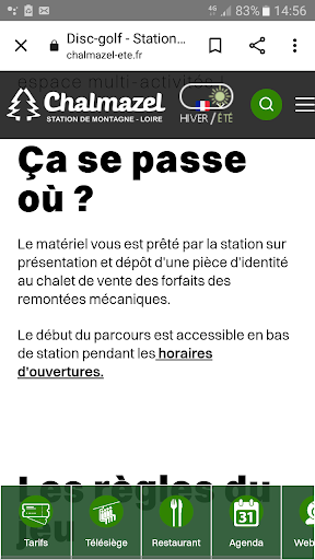 Très déçu de la station de Chalmazel, sans aucun amalgame avec la région du Forez, qui est magnifique et où les habitants sont très sympathiques. Venus en famille un vendredi de juillet 2024 après avoir repéré sur internet l'activité de disc’golf que notre fils de 12 ans voulait faire avec très grand enthousiasme. Activité mentionnée gratuite sur le site internet de la station (cf capture d'écran jointe) avec prêt du matériel sur place, mais surprise, à l'accueil des remontées mécaniques où on nous avait indiqué qu'il fallait se présenter, on nous dit qu'il faut prendre un forfait pour accéder à l'activité ! Malgré notre protestation et la présentation à la salarié du site internet qui mentionne la gratuité, la réponse est simplement que ce n'est plus gratuit comme avant. Aucune réponse de celle ci lorsque nous lui disons que le site de la station devrait dans ce cas le mentionner. Nous décidons tout de même de nous rendre à pied sur le terrain en question où il n'est nullement nécessaire de prendre les remontées mécanique car à 2 pas du bas des pistes. Les lieux sont totalement déserts, d'ailleurs comme quasiment tout le reste de la station un vendredi de juillet à 15 h ! Personne dans la cabane jouxtant le terrain pour mettre à disposition le matériel contrairement à ce que nous avait dit la personne de l'accueil. Heureusement que l'on avait pas pris de forfait (c'était de toute façon une question de principe). Grosse publicité mensongère et arnaque à touristes. Dommage, en étant plus commerçant et surtout en respectant ses engagements, on aurait sûrement consommé autre chose sur place et fait vivre la station. On serait certainement revenus pour des activités payantes. Alors que maintenant, nous sommes décidé à ne plus y revenir. 24 km en voitures réalisés pour rien et grosse déception d'un petit garçon de 12 ans. C'est pas comme ça que vous allez vous en sortir les...