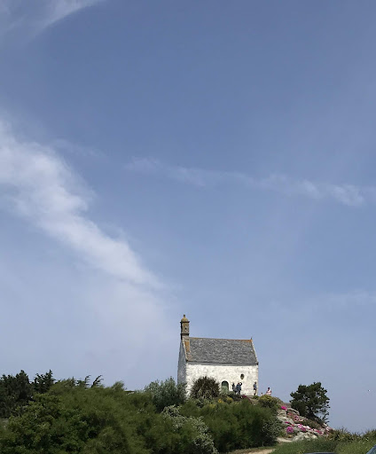 Read moreAu départ vous pensez avoir une hallucination et être en Grèce mais non cette minuscule chapelle à la porte céladon en haut de son monticule est bien bretonne. Malheureusement inaccessible aux PMR, la vue y est époustouflante. L'île de Batz s'offre à vous ainsi que Roscoff, la côte si piègeuse, les confettis rocheux courants jusqu'à l'îlot Caillot. Il se dit que lorsque les Johnnies partaient en Angleterre vendre leurs légumes, ils faisaient chacun sonner 3 fois la cloche pour être protégé par Sainte-Barbe. Il est très tentant de tirer sur la corde dans la brise de la Manche. Si vous le pouvez, grimpez pour saluer...