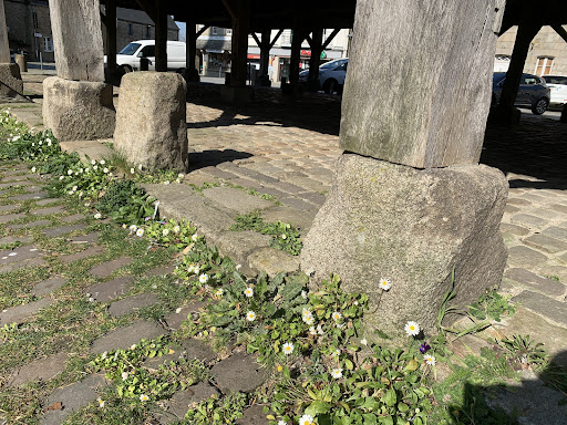 Beautiful old covered Market Place built around 1580. Used to have 2 rooms upstairs - one each end. You can see the joist slots where the floors were at each end of the structure above your head. Lovely Market every Saturday 8am to 12 noon + Excellent cheese stall from van, best cooked ham and Breton sausage I have ever tasted from Poulet Roti - roast potatoes, chicken, macaroni cheese and lots more!