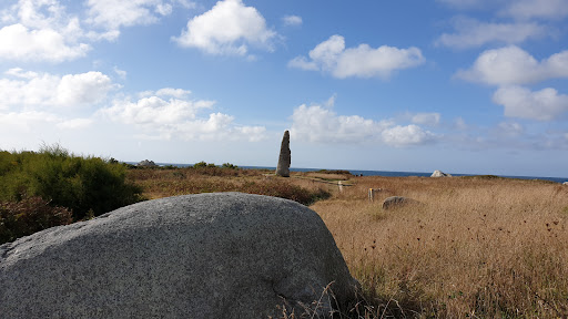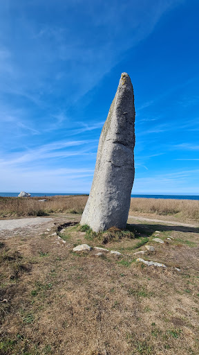 Le Menhir de Cam-Louis se trouve sur la commune de Plouescat ( je précise car nous avons eu du mal à trouver ce site). Vous y accéder après une petite marche le long du bord de mer. Cette pierre monolithique se dresse sur la lande semblant surveiller la côte .Elle est un témoignage interrogatif d'un lointain passé et vous permettra de découvrir de magnifiques paysages de cette côte Bretonne. Des banc et même des tables sont disponibles pour le pique- nique ou pour admirer...