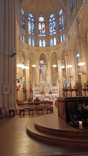 Read moreC'est une belle surprise que de voir apparaître l'immense basilique dans cette campagne (c'est pourquoi elle est surnommée la cathédrale des champs) Elle crève le ciel du Perche de ses 2 flèches. De style néogothique, sa construction demanda 17 ans de travaux (1894-1911). A l'origine, c'est l'abbé Buguet, curé du village, qui fonda en 1884, une association de prière pour les morts. Celle-ci connut un tel succès qu'elle donna naissance à un pèlerinage très suivi, jusqu'à nos jours ( Ascension, 15 Août et 2e dimanche de novembre) L'abbé a aussi créé des ateliers de broderie, de ganterie...Puis, en 1886, une imprimerie qui...