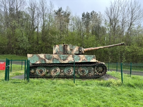 Read moreThe Tiger tank, officially known as the Panzerkampfwagen VI Tiger Ausf. E, was a formidable German heavy tank which played a significant role in the armored battles of World War II. The Tiger tank was highly effective in combat, thanks to its combination of firepower, protection, and mobility. It could engage enemy tanks at long ranges with its main gun and withstand hits from most Allied anti-tank weapons. Despite its strengths, the Tiger tank had several weaknesses, including mechanical reliability issues, high fuel consumption, and difficulties with transportation due to its weight and size. Its complex design also made maintenance and repair challenging, especially under battlefield conditions. The one on display here suffered a similar fate and per the signage, likely ran out of gas and was made inoperable by its crew.