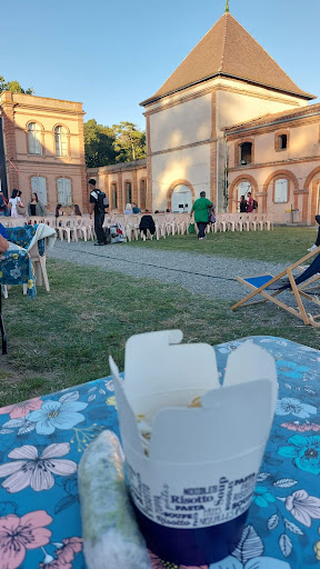 Soirée ciné en plein air dans un cadre sublime. Chateau qui présente un fort potentiel et qui est en cours de rénovation. Location de transat ou possibilité de s'asseoir sur des chaises à disposition ou par terre. 3 food trucks : wraps, galettes/crêpes et vin/bière. Ils sont pris d'assaut assez rapidement. Parkings à proximité. Très bonne organisation....