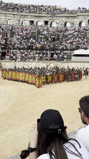 The event itself was outstanding! Over two hours of storytelling where two gentlemen had a conversation remembering the life of general Remus. Though we didn’t speak enough French to understand what they were saying, the battles and scene changes that took place told the story well enough. There were at least a dozen set changes and all of them were incredible and quickly done. We kind of felt like we were an ancient room as I’m sure that was probably the way they did things. The participants were all well-versed in their acting, and there had to be at least three or 400 of them. There was an equestrian group that was simply outstanding! Their horsemanship and ability to flip over the saddles and even go under the horse during full gallop was amazing to see.