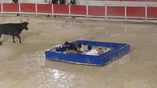 Leuk hoe lokale traditie in ere wordt gehouden. De jeugd mag vrij deelnemen (als ze durven) aan spelletjes waarbij een redelijk geïrriteerd jong stiertje ( jaar of 1 schat ik) alles en iedereen uit de arena wilt kegelen. Helaas trok de jeugd aan de zijlijn net iets te veel aandacht van twee van de stiertjes waarbij de stiertjes zich op hen richtten met helaas één gekwetst dier en één dier dat het leven liet. De presentator excuseerde zich hiervoor en heeft de rest van de avond de jeugd iets feller in het gareel gehouden en waardoor geen incidenten (aan dierlijke zijde) meer plaatsvonden. Prachtig om te zien hoe men met een grote stier (de leider) de kalfjes terug buiten leidde. Lokale folklore, prachtig gammele arena met tribunes deels op bouwstempel/stippen waardoor alles nog meer karakter krijgt. Voor de teerdere zielen: helaas geraakte ren dier gekwetst en eentje liet het leven, voor wie hier niet tegen kan...geen aanrader Voor wie graag traditie laat bestaan en af en toe een tiener ondersteboven wil zien geschept...